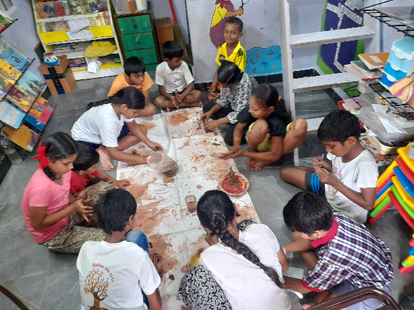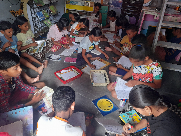 Shodhak Community Library, located in Phule Nagar Basti, is a free community library where we conduct daily sessions for children and their parents. We plan the themes and objectives a month in advance, and based on these, we prepare and conduct structured lesson plans.